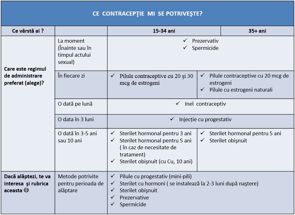 Pentru a afla mai multe detalii despre ce metodă de contracepție vi se potrivește, accesați